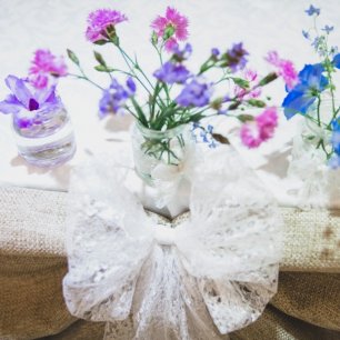 Прочая свадебная флористика должна гармонировать и с букетом невесты, и с декором свадьбы, её стилем и концепцией. К примеру, если вы делаете свадьбу в стиле рустик, то розы будут выглядеть здесь несколько странно. Но хороший флорист всегда найдёт выход и предложит вам альтернативу: если уж вы так хотите именно розы, то используйте в декоре кустовые, они очень мило смотрятся и не разрушат рустикальную тематику.